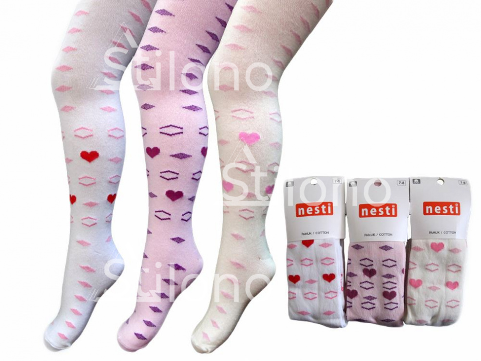 Хлопчатобумажные колготки с геометрическими фигурами и сердечками бренда "NESTI"  предлагаем на выгодных условиях . Данная модель отличается высоким качеством и актуальным дизайном для детей, поэтому являются обязательным атрибутом детского гардероба.